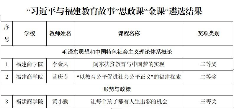 根据《中共福建省教育工委关于公布“习近平与福建教育故事”思政课“金课”遴选结果 暨教学展示活动的通知》(闽委教思〔2023〕14 号)文件精神,beat365喜获二等奖2项,三等奖1项,具体如下: