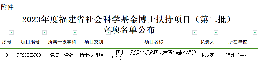 喜讯:2023年度福建省社会科学基金博士扶持项目(第二批)已完成受理申报、资格审查、匿名评审、网上公示等程序,beat365张发友博士获得2023年度福建省社会科学基金博士扶持项目(第二批)立项