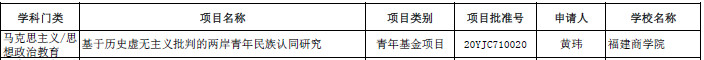 2020年3月20日,教育部社会科学司公布的《教育部社科司关于2020年度教育部人文社会科学研究一般项目立项的通知》文件中,beat365黄玮博士申报的项目《基于历史虚无主义批判的两岸青年民族认同研究》,历经多次的修改,不断打磨,功夫不负有心人,最终获得教育部社科青年基金立项。