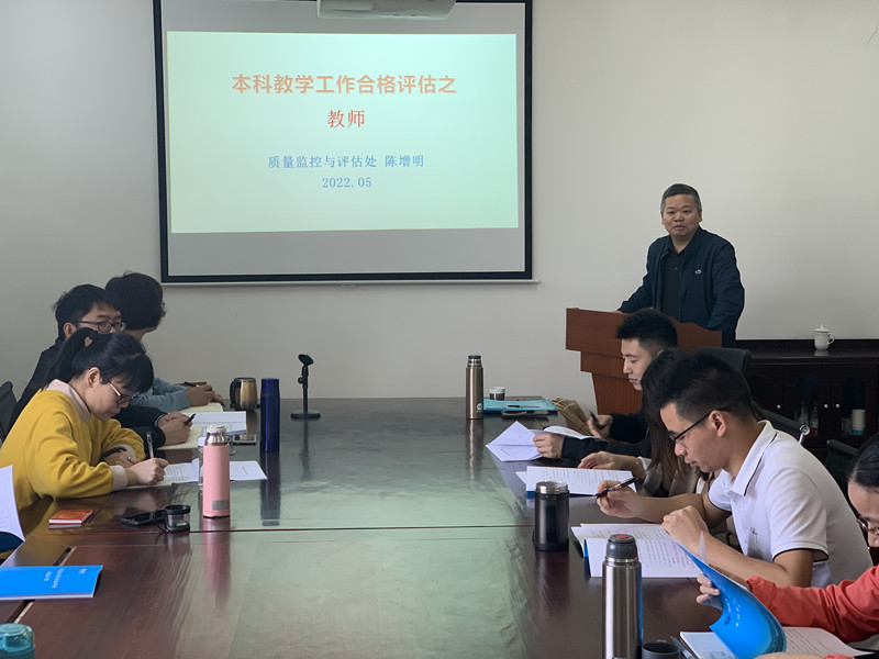 为做好本科教学工作合格评估自评自建工作, 5月3日上午校质量监控与评估处陈增明处长到beat365亚洲版官网开展合格评估专项培训。beat365亚洲版官网全体教师参加。
