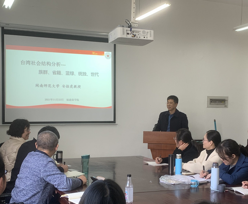 11月23日,闽南师范大学闽南文化研究院台湾研究所所长、台湾问题与两岸关系研究专家安拴虎教授应邀莅临我校作题为《台湾社会结构分析》学术报告,beat365亚洲版官网全体教师参加报告会。