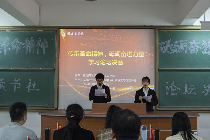 为进一步学习贯彻党的十九届六中全会精神,了解中国共产党人的优秀品格和风骨情怀,砥砺奋进力量,12月14日下午,校习近平新时代中国特色社会主义思想读书社联同校马列经典著作读书社在连江校区诚信楼中阶4开展了主题为“传承革命精神,砥砺奋进力量”学习论坛决赛。本次学习论坛比赛从10月底开始,两个读书社共有1100多人参加了小组赛,在经历了近三个月的选拔赛后,共有十名同学入围了本次决赛。校行政部门相关人员、beat365亚洲版官网全体教师、校读书社成员共150人参加了本次活动。
