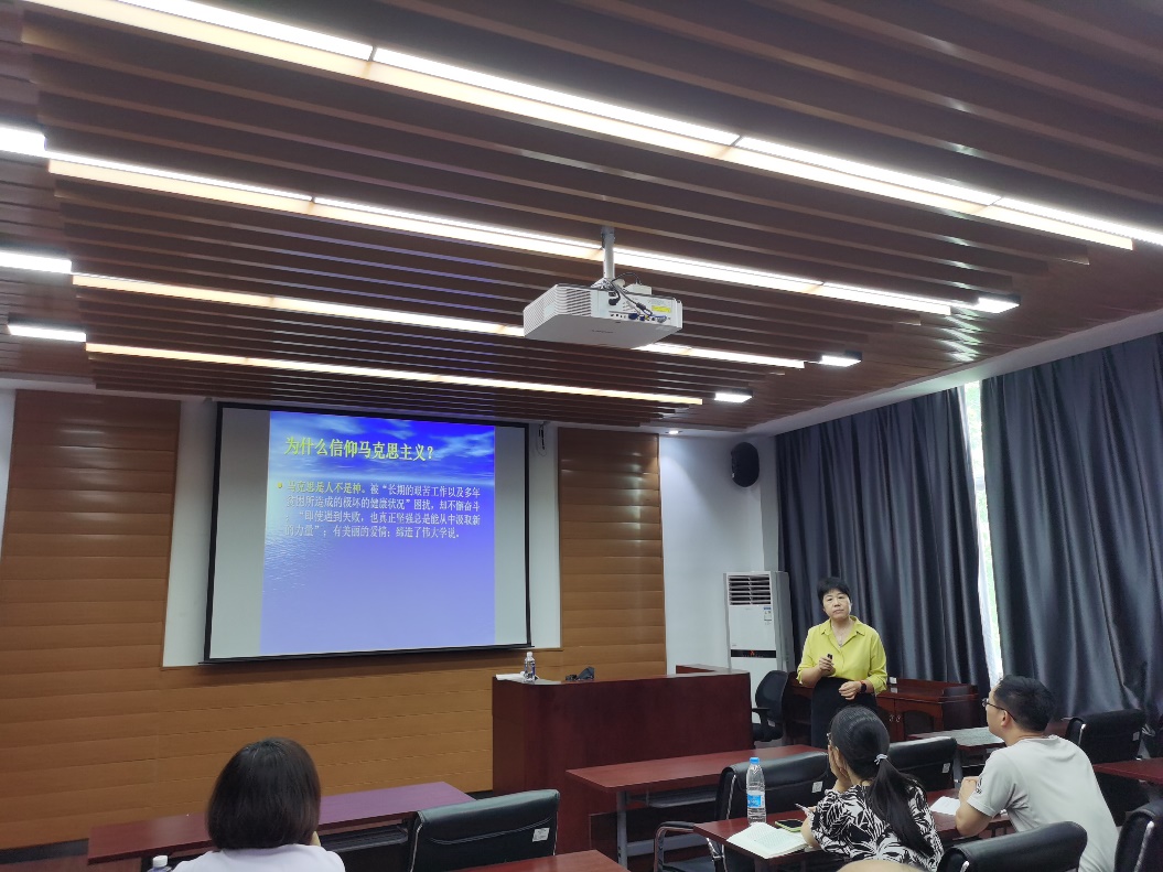 授课中,刘新玲教授围绕“为什么信仰马克思主义”“为什么信仰共产主义”以及“为什么要坚持中国特色社会主义共同理想”等三个问题展开教学。她从“马克思是人不是神”“我们对马克思主义的信仰来自于对其理想的认同”“马克思主义彰显的无穷真理力量”以及“马克思主义的理论符合我们所追寻的价值观”等四个方面,系统阐述了马克思主义是我们认识世界、改造世界的强大思想武器,并对“资本主义完善论”“南辕北辙论”等一些错误观点进行批判。刘教授表示,在授课中要注意学理性和价值性相结合,在理论分析和价值引导中进一步增强大学生对马克思主义、共产主义的信仰,在分析错综复杂的社会现象中看清本质、明确方向。