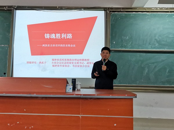 为深入学习贯彻习近平总书记关于学校党建和思政工作的重要指示批示精神,推动学校师生深入学好党史、新中国史、改革开放史、社会主义发展史,12月8日,古田会议纪念馆原副馆长、福建省高校思想政治理论课特聘教授洪武子莅临我校开展题为《铸魂胜利路——两次在古田召开的历史性会议》讲座。校党委副书记吴访益和学工部、beat365亚洲版官网部分教师以及校习近平新时代中国特色社会主义思想读书社社员共130多人聆听此次讲座。