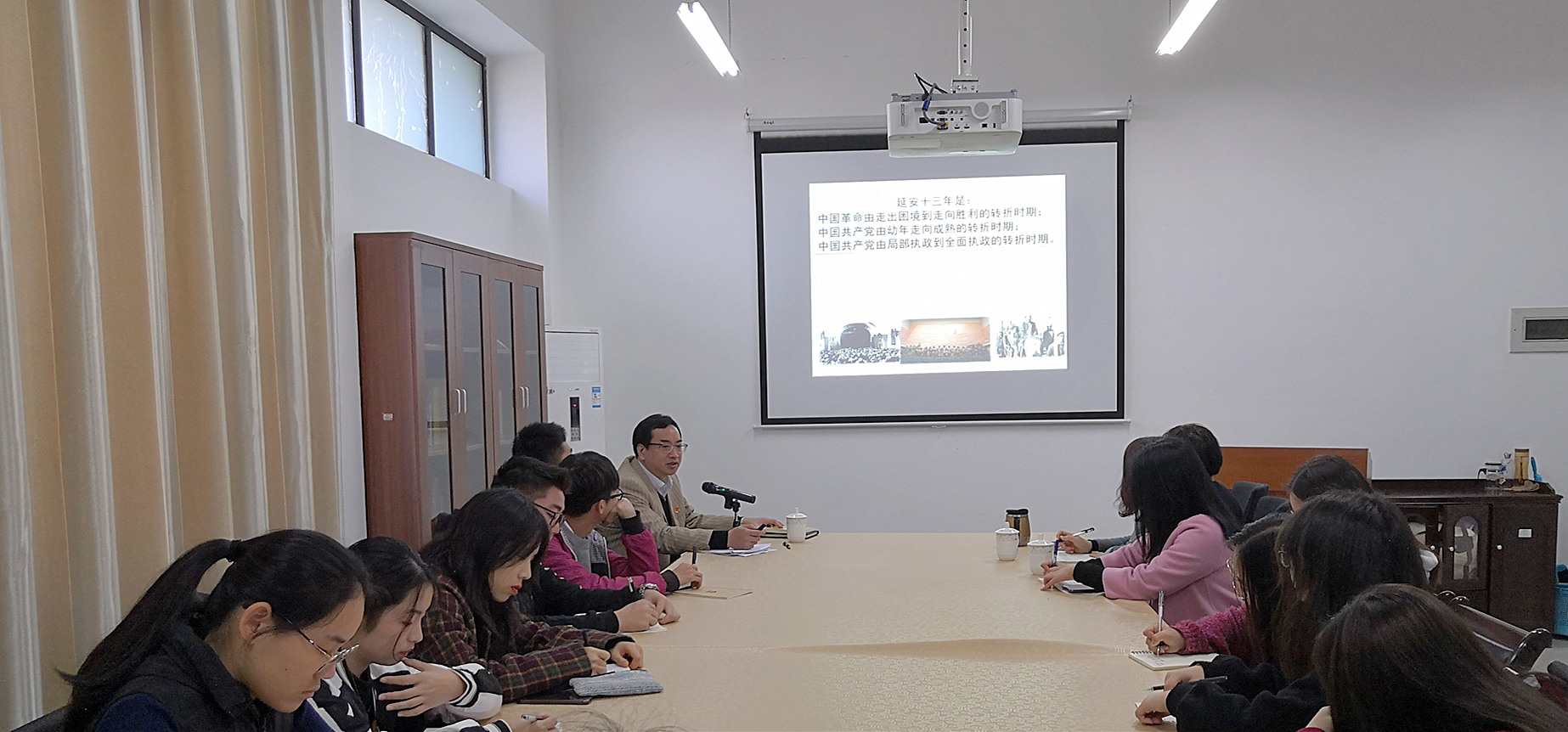 1月2日上午,副校长蒲文庆在beat365亚洲版官网会议室给财务与会计学院习近平新时代中国特色社会主义思想读书社学生上了一堂题为《中国革命成功的延安之路——中共中央延安十三年》的思政课。财务与会计学院、beat365亚洲版官网部分老师以及读书社成员参加了此次学习。