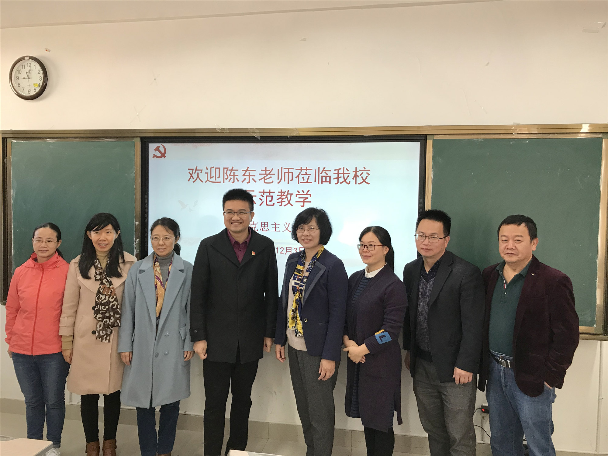 示范教学结束后,陈东老师就如何进一步深化思想政治理论课教学改革、学习贯彻习近平新时代中国特色社会主义思想等方面的问题,和教师们进行了教学交流研讨。他认为,思想政治理论课要以学生问题为导向,抓住教材的灵魂,把教材的每一章都梳理成几个大问题、若干个中问题和一系列小问题,并且用大量丰富的教学案例来充实,以此展开教学,建立丰富多彩的资源库。陈东老师还对我校马院教师就思政课教学提出的问题一一进行了解答。