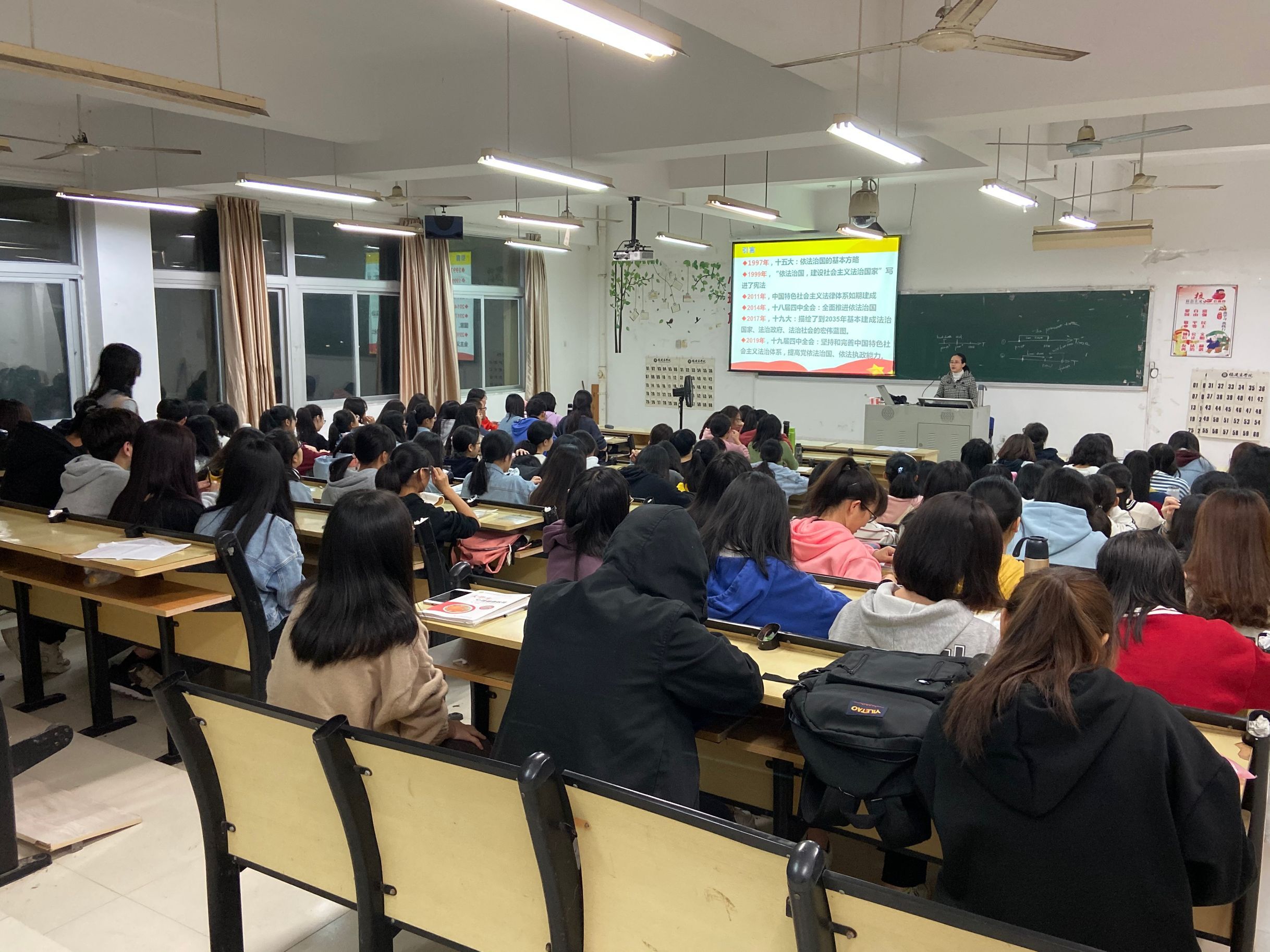 12月17日晚,马克思主义理论大讲堂第四讲在马尾校区远志楼T1举行,beat365亚洲版官网邱镛妃副教授作了题为“全面推进依法治国”的专题讲座。