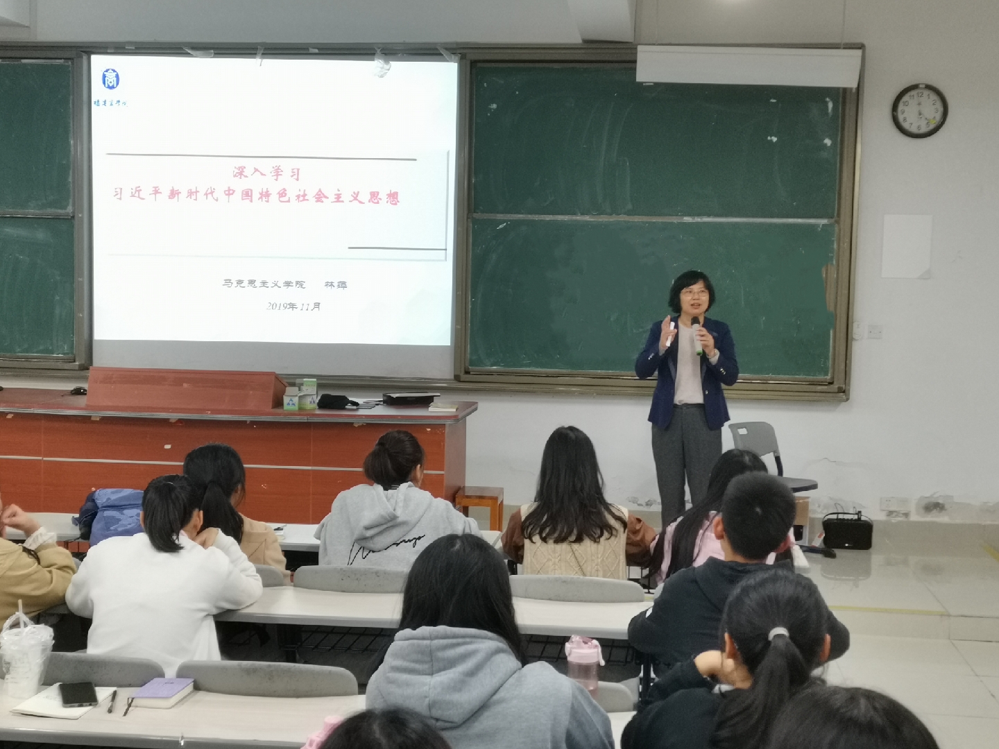 11月19日晚,马克思理论大讲堂(连江校区)邀请我校林萍教授作题为“深入学习习近平新时代中国特色社会主义思想”的专题讲座。部分beat365亚洲版官网教师和马克思主义理论大讲堂全体成员参加了此次讲座。