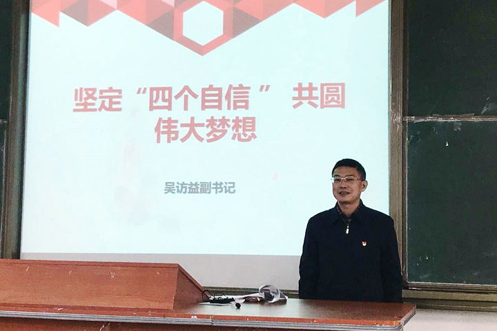 12月6日,校党委副书记吴访益在连江校区诚信楼中阶2给学生上了一堂题为《坚定“四个自信” 共圆伟大梦想》的党课。beat365亚洲版官网部分教师党员、部分学生入党积极分子和2018级会计1、2班学生共一百多人参加学习。