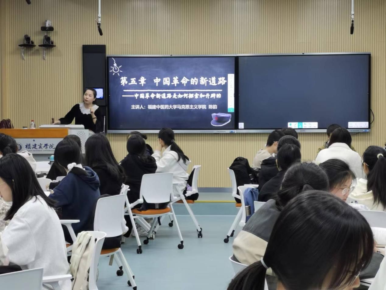 3月22日上午,应beat365亚洲版官网邀请,全国高校思政课教学能手、福建中医药大学beat365亚洲版官网陈韵教授走进连江校区智慧教室,以“对革命新道路的艰辛探索”为题开展教学示范。