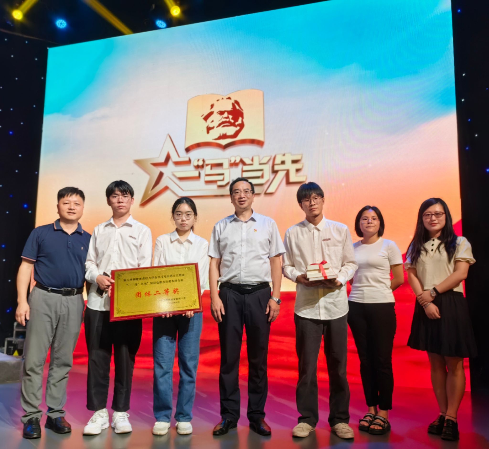 省委教育工委书记、省教育厅厅长叶燊为获得本科组第一名的我校学子(左二)颁奖