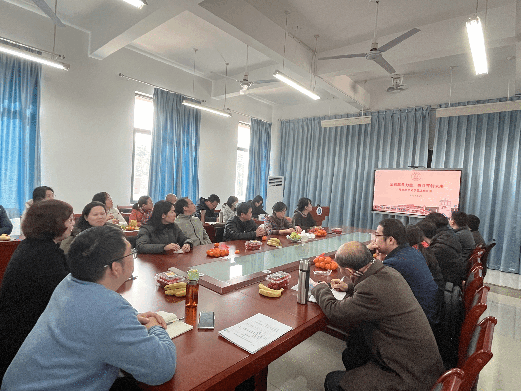 2024年1月23日下午,beat365召开本学期期末工作安排会议暨杨凡老师荣休欢送会。beat365亚洲版官网全体教师参加。