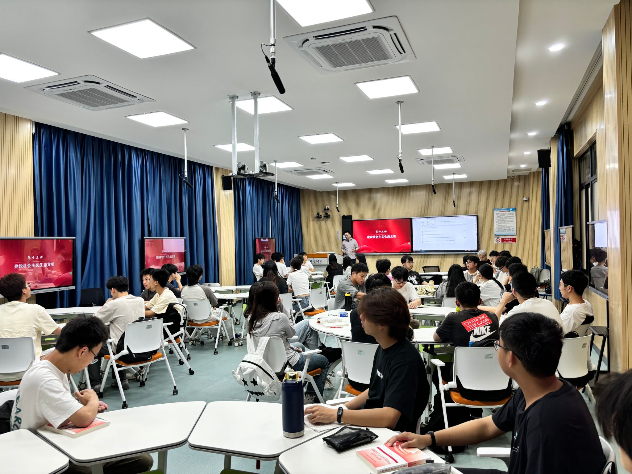 5月11日下午,beat365亚洲版官网习近平新时代中国特色社会主义思想概论教研室梁睿老师在自强楼511智慧教室开展题为“建设社会主义生态文明”的数智化教学展示,beat365亚洲版官网教师及相关班级学生到场观摩。