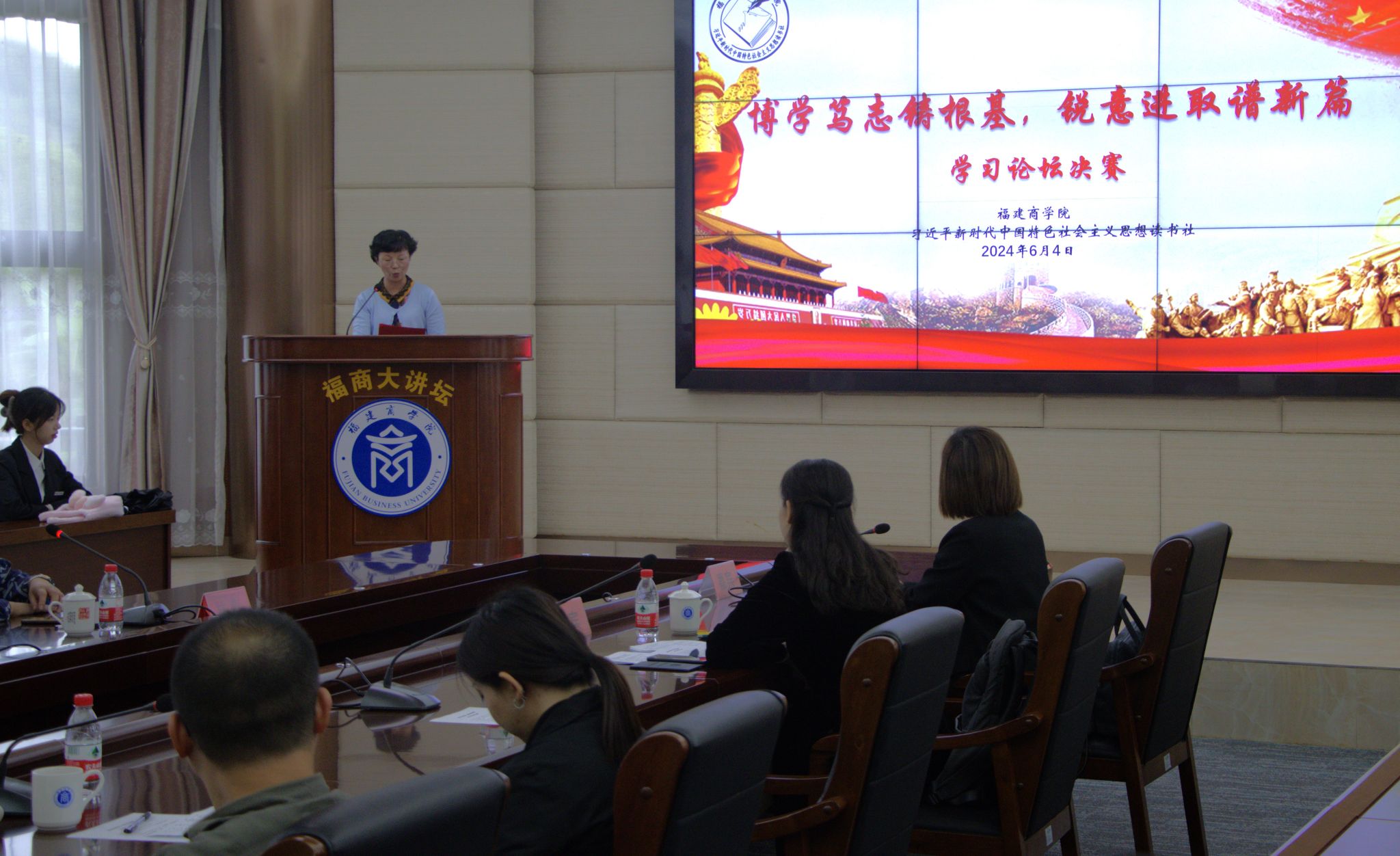 2024年6月4日,福建商学院习近平新时代中国特色社会主义思想读书社与马列经典著作读书社,在连江校区明德楼视频会议室联合举办了主题为“博学笃志著根基 锐意进取谱新篇”的学习论坛决赛。学校林文艺副校长、beat365亚洲版官网负责人和读书社指导老师、beat365亚洲版官网部分教师及读书社社员等近百名师生参加此次活动。