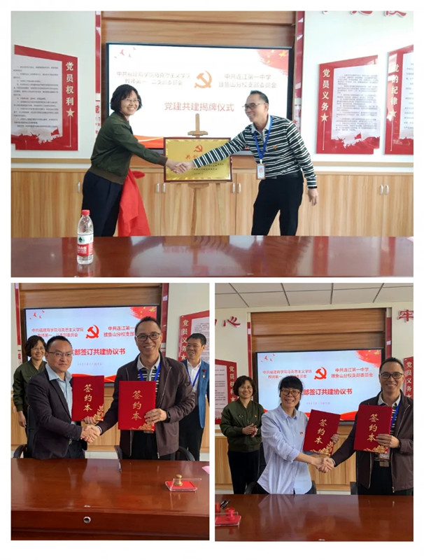 11月9日,福建商学院beat365亚洲版官网教师第一、二党支部与连江一中鲤鱼山分校党支部党建共建签约仪式在连江一中鲤鱼山分校举行。beat365亚洲版官网党委书记、院长林萍及副院长张发友,连江一中鲤鱼山分校党支部书记林卫、校长陈为信及学校班子成员,双方党支部教师共30余人参加了签约仪式。