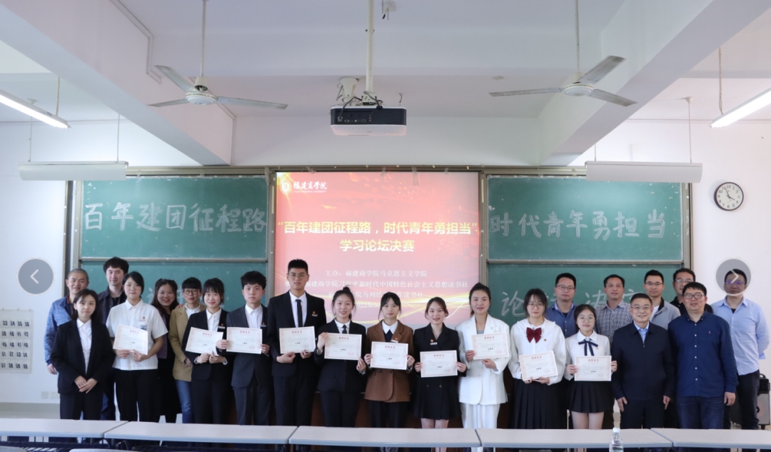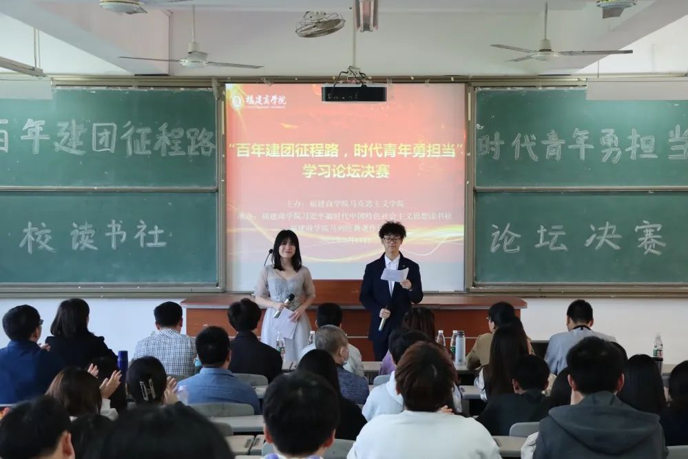 2022年5月17日下午,校习近平新时代中国特色社会主义思想读书社和校马列经典著作读书社在连江校区诚信楼中阶三举办主题为“百年建团征程路,时代青年勇担当”的学习论坛决赛。校党委副书记吴访益、beat365亚洲版官网部分教师及二级学院读书社相关指导老师、校读书社成员近200人参加了本次活动。