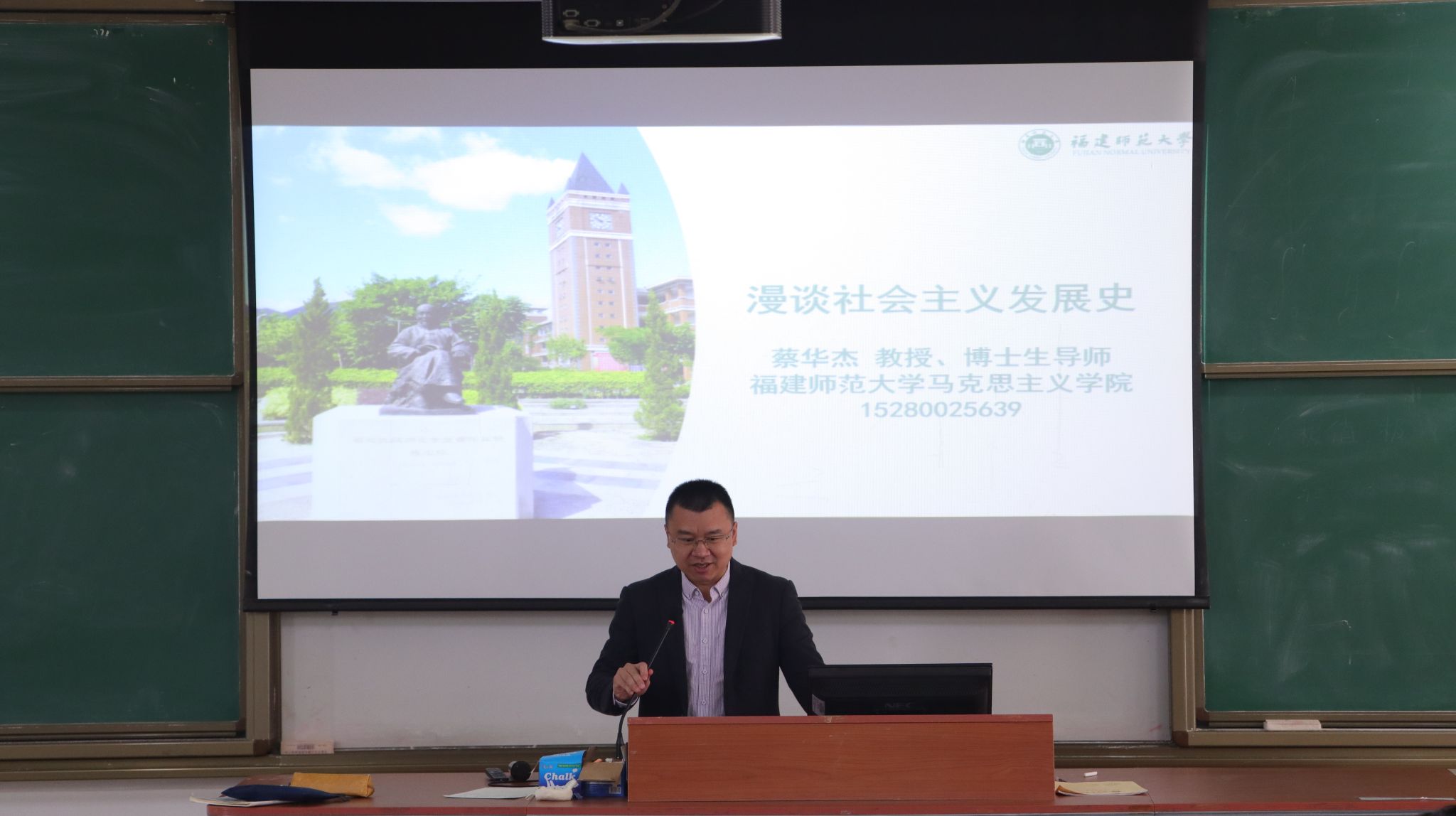 2024年4月9日,福建师范大学蔡华杰教授应邀莅临我校连江校区,开展题为《漫谈社会主义发展史》的专题讲座,分享了对于社会主义发展历程的深刻认识与独到见解。校beat365亚洲版官网部分教师、校读书社社员及青马班成员聆听了此次讲座。