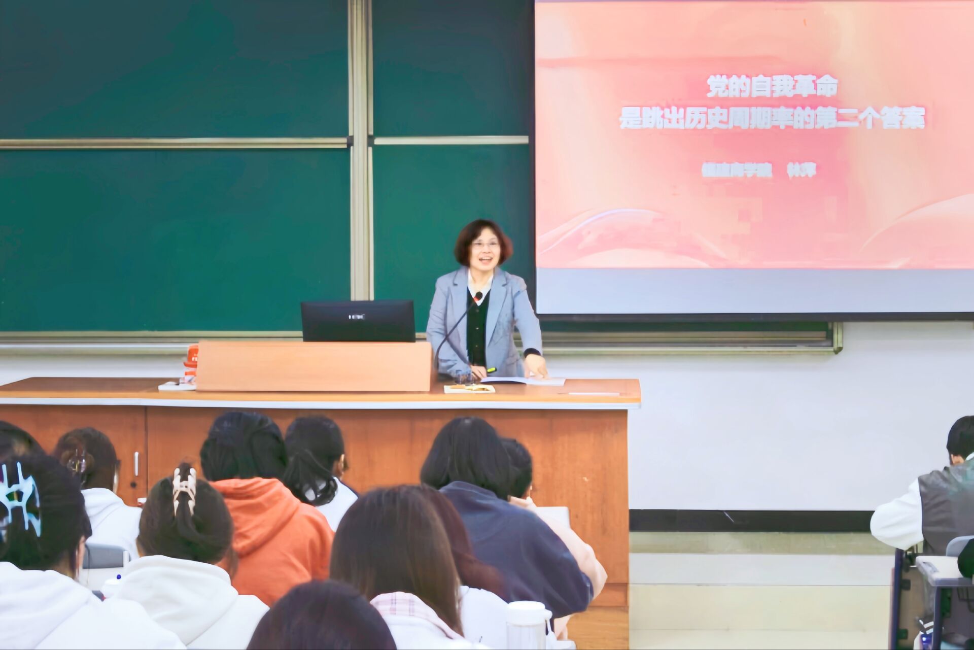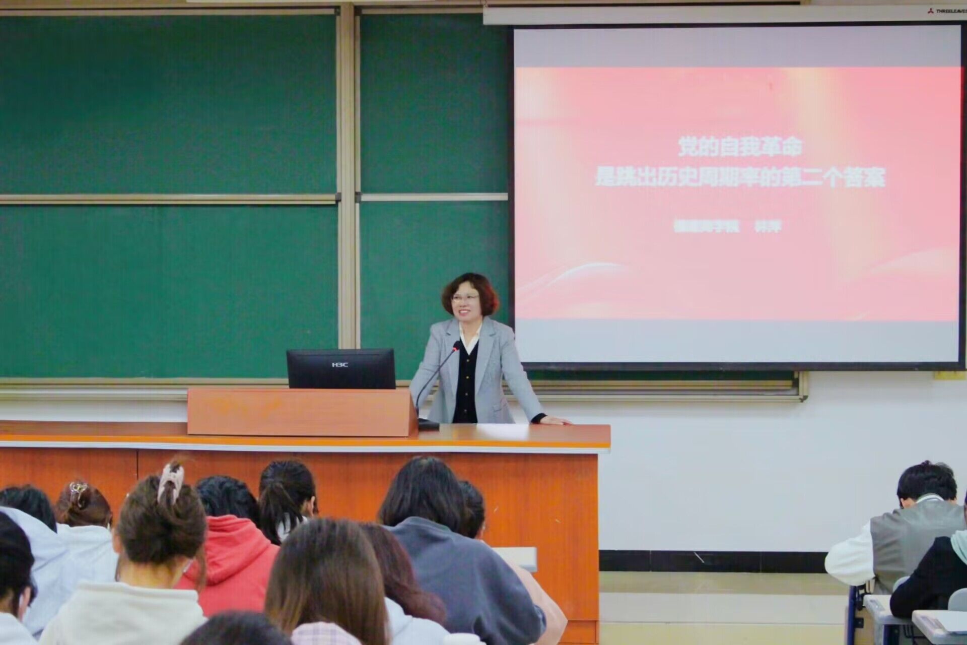 为深入学习贯彻党的二十届三中全会精神,11月19日下午,beat365亚洲版官网院长林萍教授于连江校区自强楼中阶梯一教室开展“党的自我革命是跳出历史周期率的第二个答案”专题讲座。校读书社社员、青马班学员代表近百人参加了此次讲座。