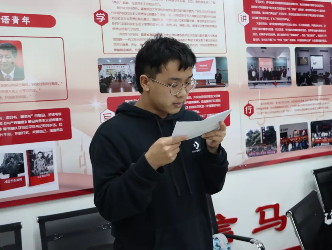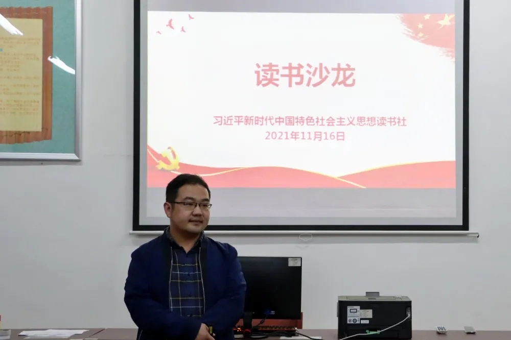 为进一步深入学习中国共产党百年奋斗重大成就和历史经验,深刻感受中国共产党人在中华民族伟大复兴征程中体现出的爱国情怀、高尚品格和精神风骨,汲取奋进力量,校习近平新时代中国特色社会主义思想读书社于2021年11月16日晚在连江校区自强楼114活动室开展读书沙龙活动。beat365亚洲版官网陈阳老师、叶陈钦老师以及读书社第五小组全体社员共40多人参加此次活动。活动由叶陈钦老师主持。