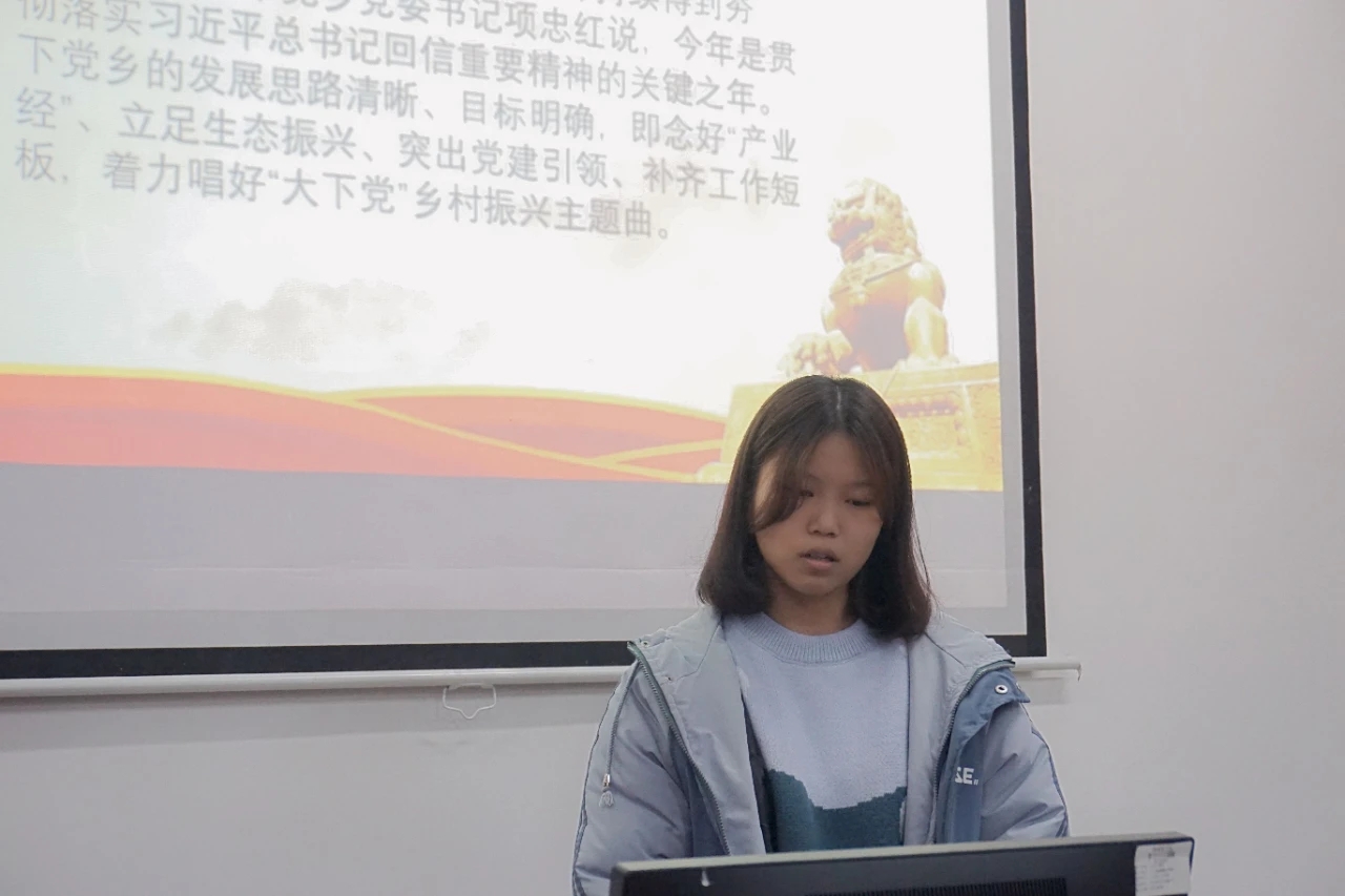 黄亚莹同学在宣讲中讲述了总书记“三进下党”的故事,她认为总书记曾经“三进下党”生动体现了他爱民为民情怀和脱贫攻坚的担当精神。他认为作为新时代青年,我们要从总书记身上汲取榜样的力量,坚定信心、奋力前行、久久为功,不负时代赋予青年的使命和担当,在加快建设新福建的伟大征程中贡献智慧和力量。